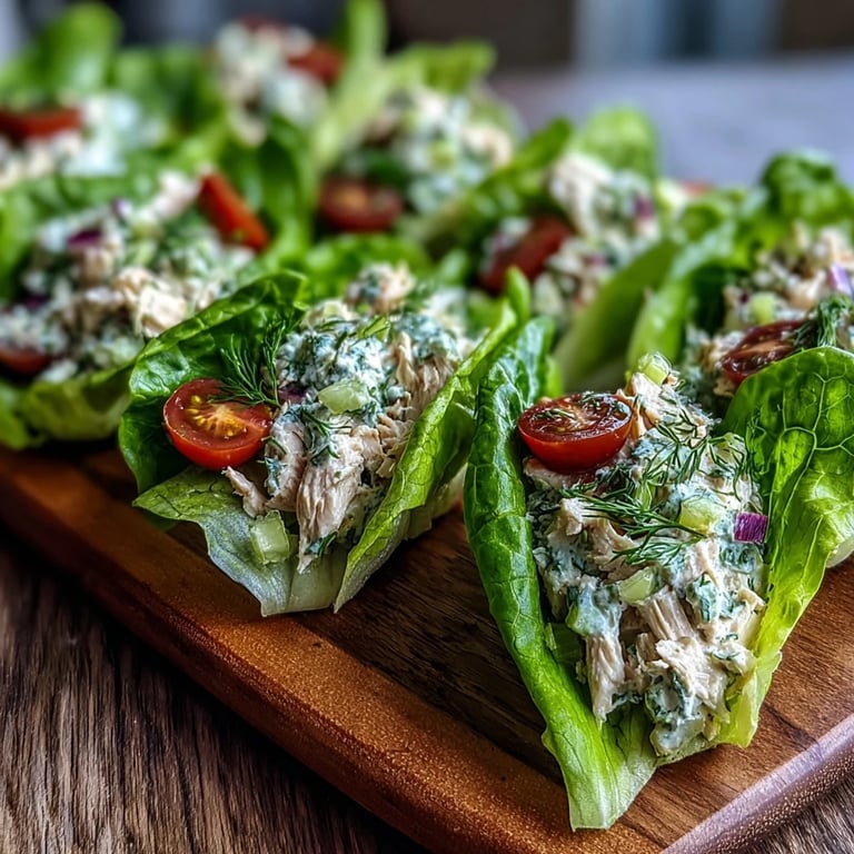 Save It Enjoy a fresh, protein-packed lunch with these Avocado Herb Chicken Salad Lettuce Cups. This dish features creamy avocado, tender chicken, and aromatic herbs, all served in crisp butter lettuce cups for a light and satisfying meal that is perfect for a quick and healthy midday break.