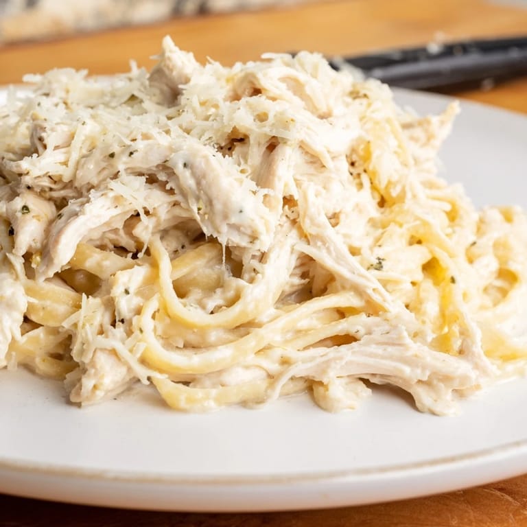 This meal marries simplicity and indulgence, making homemade Alfredo accessible even on your busiest days. You can customize with frozen peas or fresh mushrooms to sneak in some veggies, or keep it classic. The sauce blends heavy cream, cream cheese, and Parmesan, balanced with herbs and a touch of heat from red pepper flakes if you like a little kick.