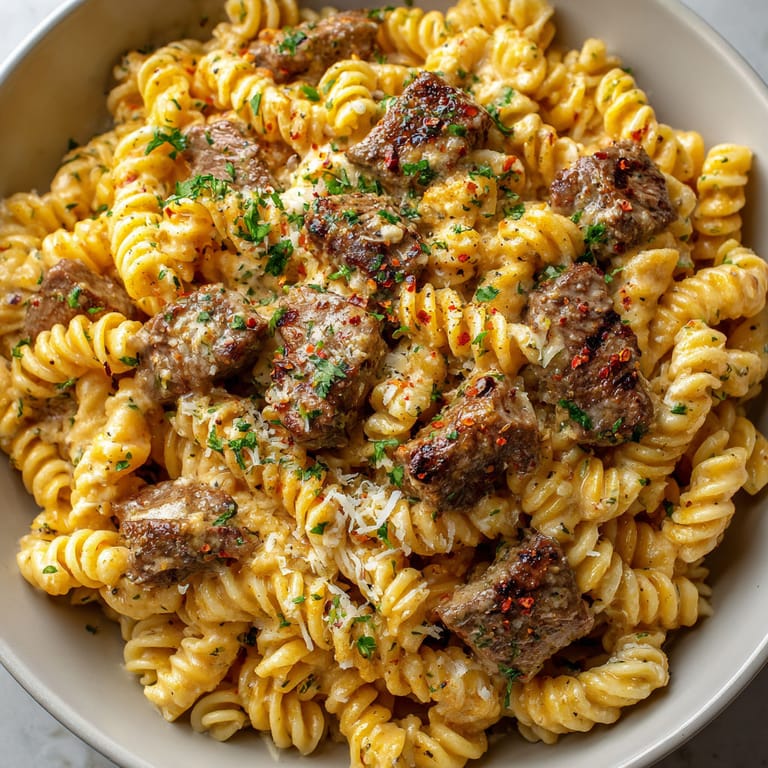 Save It One-pot creamy spicy garlic butter steak and pasta is just the sort of recipe that brings everyone running to the kitchen. It is rich enough to impress guests and fuss-free enough for those nights when you want all the flavor without a mountain of dishes. Steak bites get golden and juicy, then mingle in a garlicky cream sauce that clings to swirly rotini, offering a bowlful of pure comfort with a lively hint of spice.