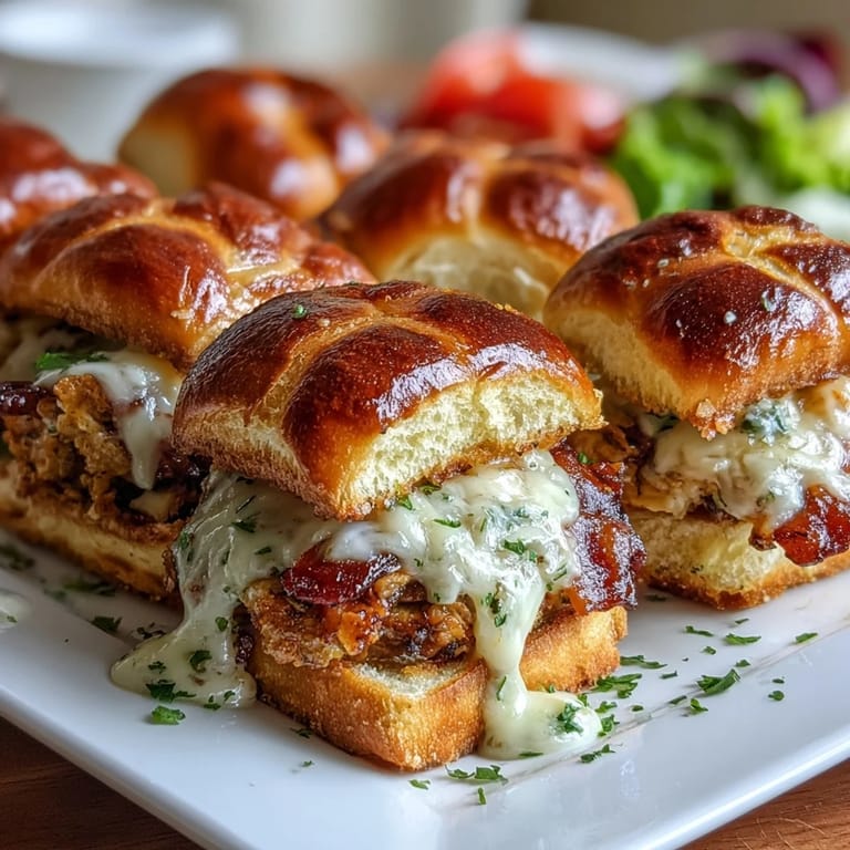 Save It The aroma of sizzling bacon wafted through my kitchen as I experimented with Derby Party Hot Brown Sliders for the first time& The whole process felt playful, especially when layering creamy Mornay sauce onto pillowy brioche buns—miniature versions of Louisville's most famous sandwich& I never thought I'd love assembling tiny sandwiches, but watching the cheese melt and bacon crisp up brought a real sense of accomplishment& There's something about sliders: they're festive without being fussy, and these bring old Kentucky charm in every bite& Even if you're not celebrating Derby day, these sliders guarantee cheers from your guests&