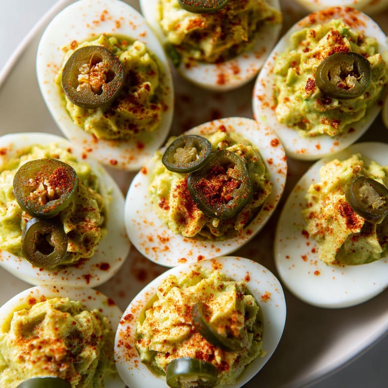 - Sprinkle a generous pinch of smoked paprika over the tops of the eggs Finish with a scattering of diced pickled jalapeños The paprika delivers a gentle smoky heat while the pickled jalapeños add crunch and brightness