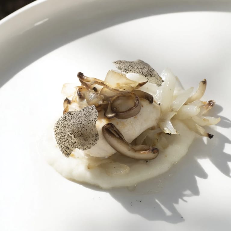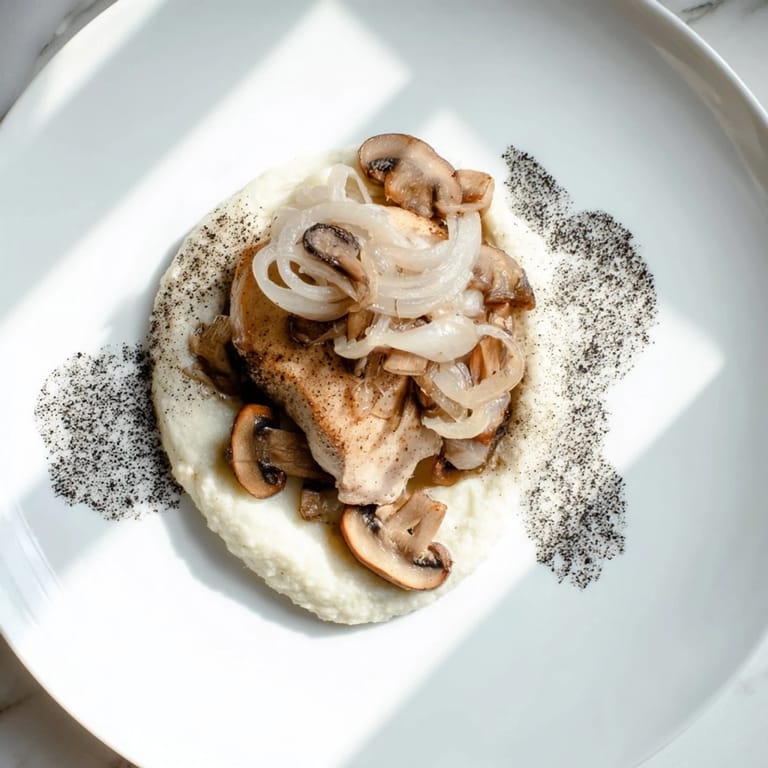 Once you understand the structure of this dish—tender protein, silky vegetable purée, sautéed mushrooms, dramatic shadows—you can play with it endlessly. I've made vegetarian versions using thick slices of roasted celeriac or even firm tofu, and each one carries the same sense of quiet elegance. The framework is so flexible that you could add fresh herbs like chervil or tarragon, swap the mushrooms for sautéed leeks, or infuse the broth with aromatics as long as they don't cloud the liquid.