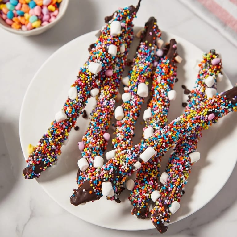 For best results, ensure the chocolate is melted smoothly and dipped rods have excess chocolate drip off to avoid clumps. Refrigerating briefly helps the chocolate set quickly, keeping decorations intact. If using gluten-free pretzels or cookie sticks, confirm they are sturdy enough to support the chocolate and toppings. Use microwave-safe bowls to melt chocolate safely and an offset spatula or spoon for easier coating.