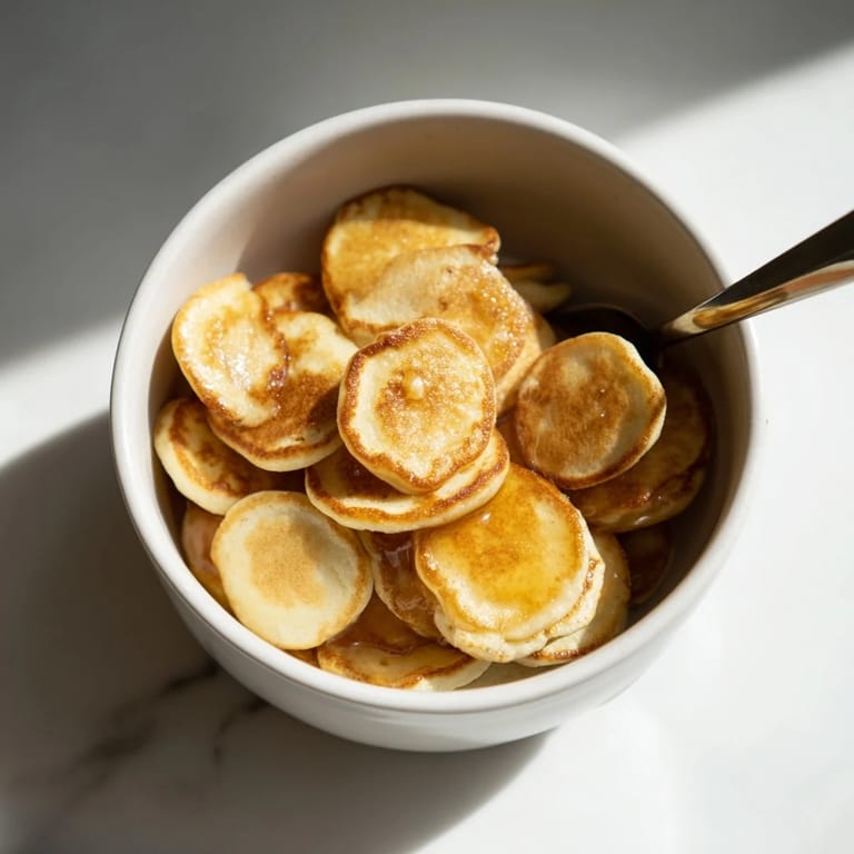 I first made mini pancake cereal for my niece one weekend, and watching her excitement as she poured syrup over her 'breakfast bowl' was unforgettable. It brought a touch of whimsy to our morning and quickly became a family favorite.