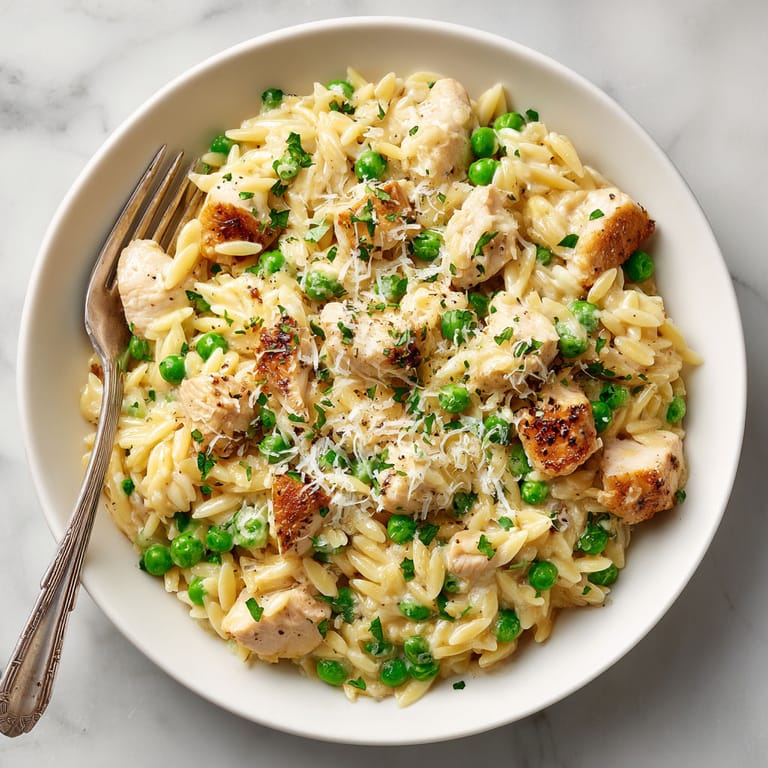 Save It This One Pot Chicken and Orzo Pasta brings together tender chicken pieces creamy orzo sweet peas and a splash of lemon for a comforting Mediterranean-inspired dinner that comes together in just one pot. It is my go-to dish for busy evenings when I want something homemade without a mountain of dishes or prep work.