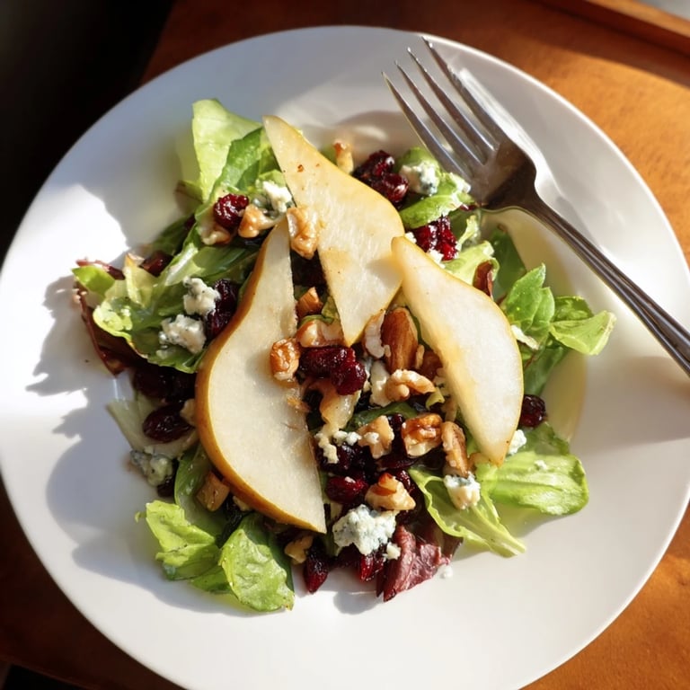 This elegant pear and Gorgonzola salad combines fresh, juicy pears with creamy, tangy blue cheese, crisp mixed greens, and crunchy toasted walnuts. A simple honey-balsamic vinaigrette ties everything together beautifully. Ready in just 15 minutes with no cooking required, it's perfect for a light lunch, dinner starter, or elegant side dish. Vegetarian and naturally gluten-free, this salad works wonderfully as written or easily adapts with protein additions like grilled chicken.
