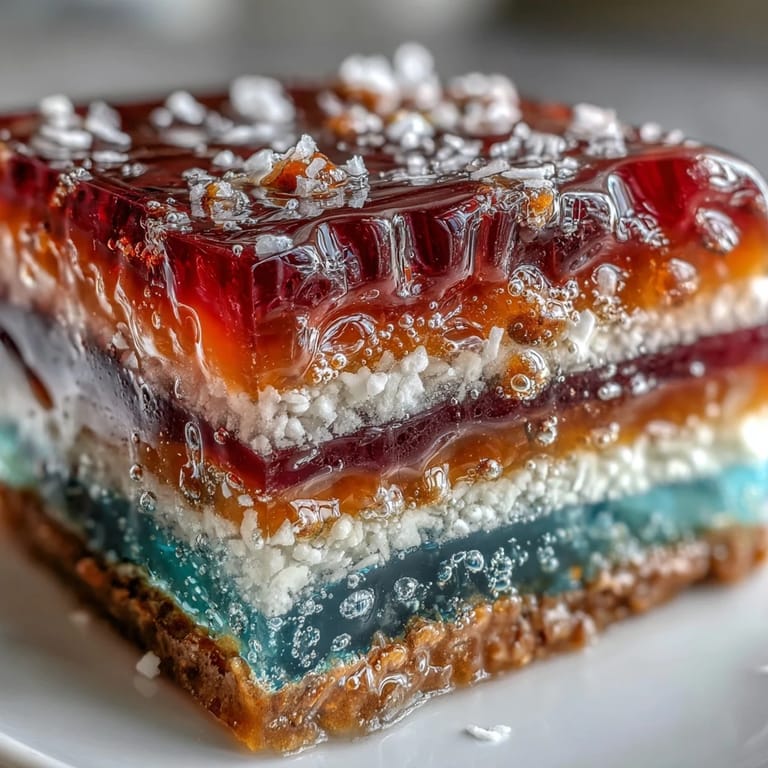 Save It The first time I made this Rainbow Jelly Cake, the kitchen was suddenly cheerful; each bowl of colored jelly turned the countertop into a painter’s palette. The glossy blues and sunset oranges shimmered beneath the fluorescent light. It felt less like baking and more like crafting something joyful, especially when the coconut cream’s gentle aroma mingled with all the fruitless colors. While the recipe seemed precise, the urge to improvise with hues and flavors was irresistible. Who knew agar-agar could become such a canvas?