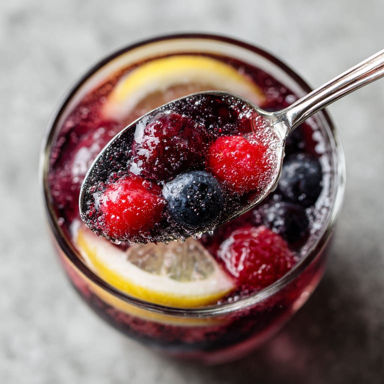 - Add a fresh lemon slice to the rim or float it on top. Then drop in a few extra whole berries for a pop of color and serve right away.