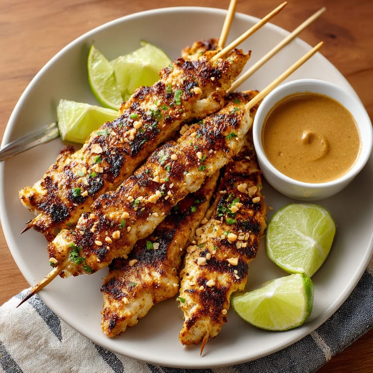 Save It The peanut sauce is always the star My kids love dunking the chicken again and again in extra sauce and we laugh over who gets to clean out the last bit from the bowl Those bright citrusy limes remind me of street food in Bangkok where every dish finds a perfect balance between creamy and sharp