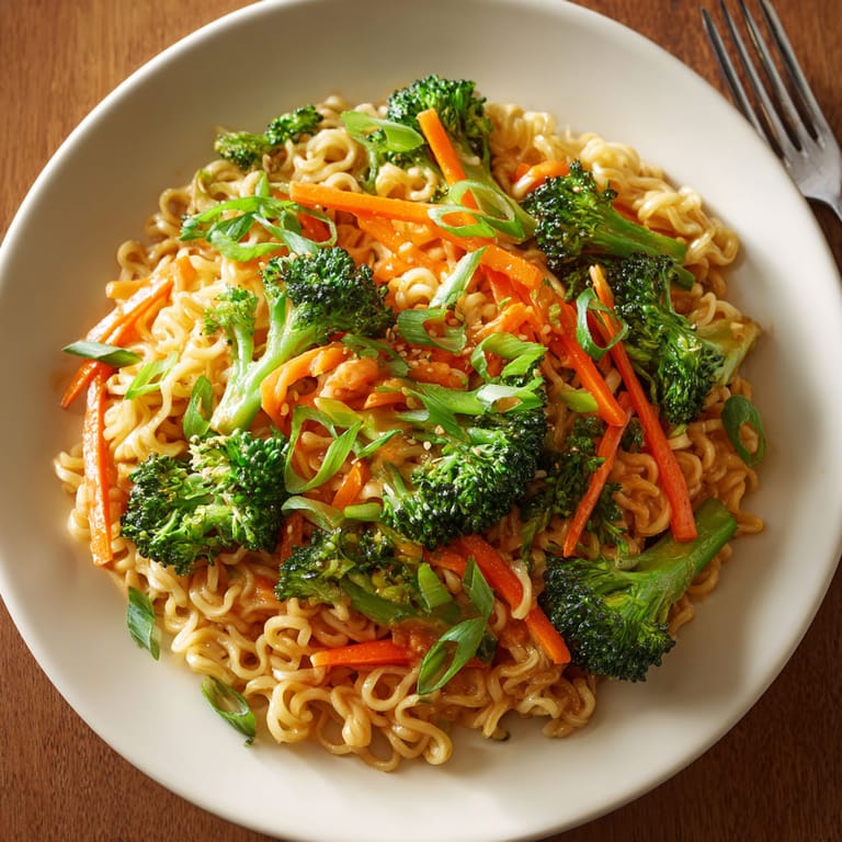 Peanut noodles have a long history in Thai inspired cooking though traditional Thai cuisine uses rice noodles not ramen. The stir fry method here borrows from Chinese and Southeast Asian traditions where fast high heat cooking preserves flavor and crunch. This recipe is not authentic Thai but draws on flavors and methods that make everyday dinners sing.