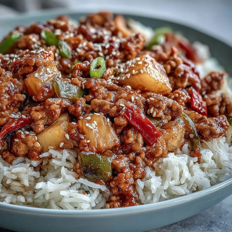 Save It My neighbor brought over a container of this after a long Saturday spent helping her move furniture. I sat on her kitchen floor, fork in hand, tasting something I couldn't quite name but couldn't stop eating. The pineapple was warm and glossy, the turkey savory with a kick I later learned was gochujang, and the rice soaked up every bit of that sweet-sour sauce. She laughed when I asked for the recipe, saying she'd thrown it together from leftovers and a half-empty jar of Korean chili paste. That scrappy, spontaneous energy is exactly what makes this skillet so good.