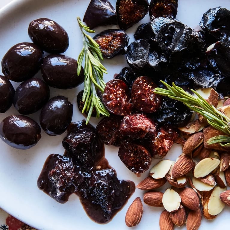 This board isn't random; every element exists because it teaches something. The darkness isn't just about color—it's about depth, salt, earth, and the umami that only develops over time in fermented olives and dried fruit. The light side is immediate: bright, creamy, fresh. Together on one board, they're a conversation about how seasons contain opposite truths simultaneously. Winter isn't just cold darkness; it's also the promise of return, and this board tastes like both.