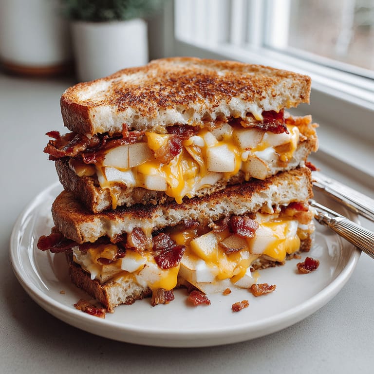 - Lift the sandwich from the pan and let it sit for a minute to set Slice in half with a sharp knife for those gorgeous cheesy layers Serve hot while the cheese is still silky and the apples have a slight crunch