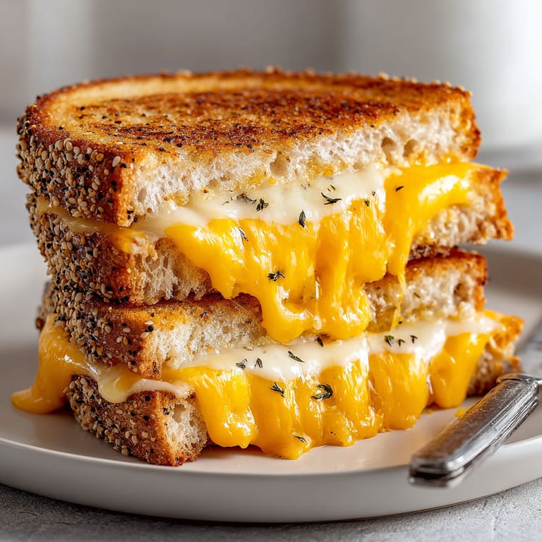 Save It My favorite part is the first bite through that crunchy bread the sharp cheddar just oozes out and the flavor is worth every minute. One rainy Saturday my son suggested adding everything bagel seasoning. Since then we never make these sandwiches without emptying half the jar.