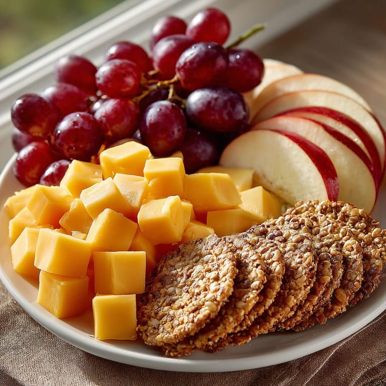 Save It Some evenings call for something light yet satisfying and this fruit and cheese plate has quickly become my favorite answer when I need a real meal but do not want to cook. Balanced with vibrant fruit, savory cheese, and crisp whole grain crackers, it is a little bit elegant but so easy you can build it in minutes. Whether you are making dinner for one or adding variety to a family snack board, it always feels a bit special.