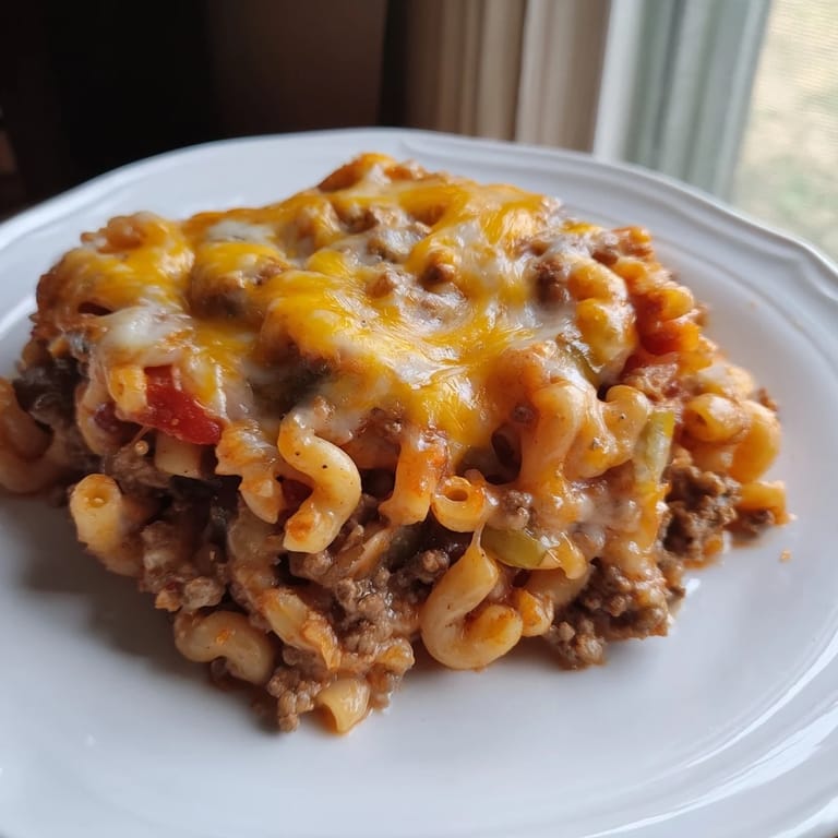Save It A comforting, budget-friendly casserole featuring tender macaroni, savory ground beef, and a rich tomato sauce, perfect for family dinners.