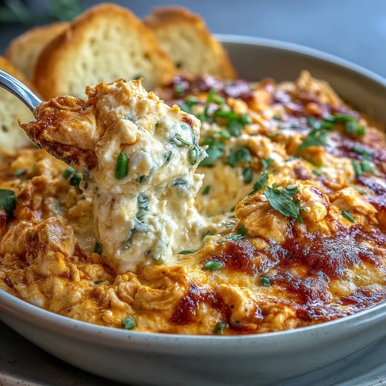 Save It I discovered this dip by accident while meal prepping on a Sunday afternoon, staring at a container of cottage cheese that seemed destined for toast. My partner mentioned bringing something to a game night, and I thought, why not transform that cottage cheese into something actually exciting? The Buffalo sauce hit the bowl, the chicken followed, and suddenly I had this creamy, tangy, spicy thing that tasted nothing like diet food. Everyone at that gathering kept asking what was in it, convinced I'd somehow hidden vegetables in something this good.