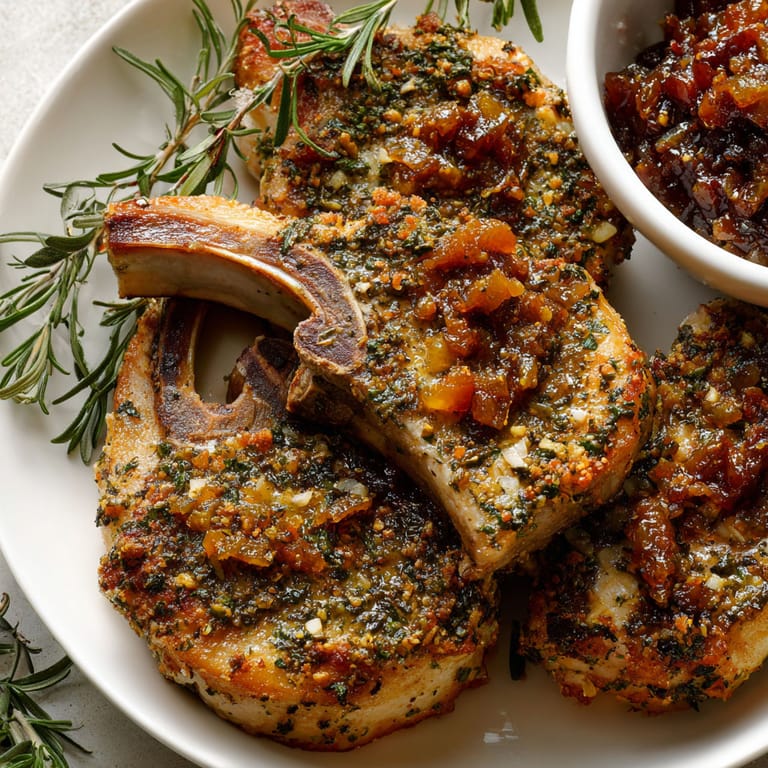 Save It Few dinners compete with the comforting aroma of juicy pork chops coated in a crisp layer of garlic and fresh herbs roasting away in the oven. This recipe is a lifesaver for busy nights when you crave real flavor but need dinner fast.
