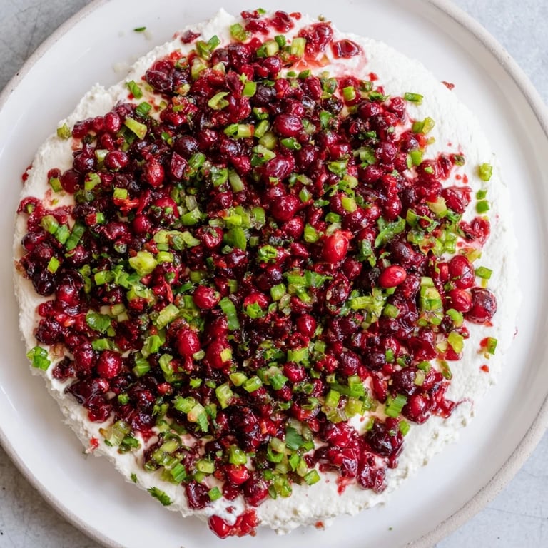 - Cranberry Topping: 1 cup fresh cranberries, finely chopped. 1/2 cup granulated sugar. 1 medium jalapeño, seeded and finely diced. 2 tablespoons fresh cilantro, chopped. 2 tablespoons green onion, finely sliced. 1 tablespoon fresh lime juice. 1/4 teaspoon ground cumin. Pinch of salt.