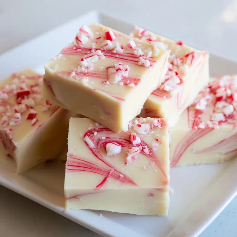 Save It A luscious creamy white chocolate fudge swirled with peppermint and topped with festive crushed candy canes. Perfect for holiday gifting or a quick sweet treat.